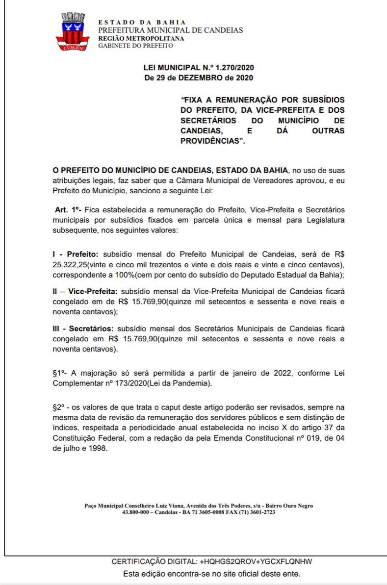 Já o gestor – que no começo da pandemia fechou a Policlínica, demitiu 50 médicos, desativou o aparelho de ultrassom e comprou respiradores e mascaras superfaturados e por isso teve quase R$ 1 milhão bloqueado com secretário, funcionários e empresa pela Justiça Federal e agora promete comprar vacinas, fato inédito na história brasileira – vai passar de R$ 20.042,34 para R$ 25.322,25, ou seja 4,8 salários a mais por mês
