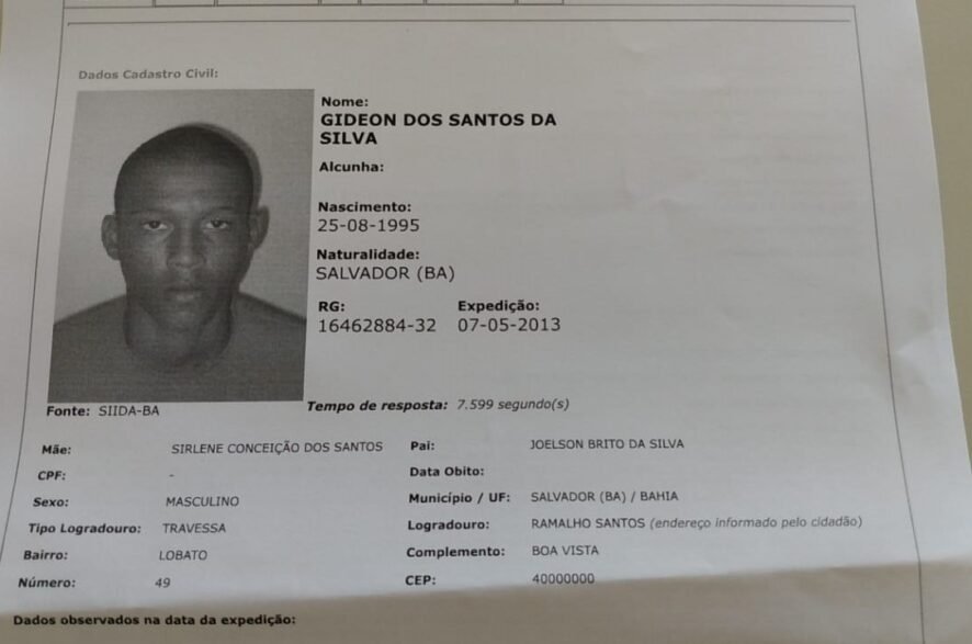 Ao tentarem prestar socorro, os PM’s também encontraram documentos que identificavam a vítima como Gideon dos Santos da Silva, de 25 anos, natural de Salvador, que foi encaminhado para o Hospital Albino Leitão, na mesma cidade, onde foi constatada morte.